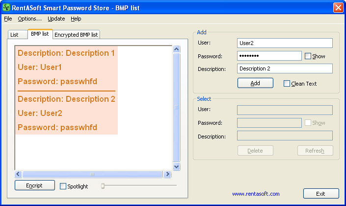 Remember: to keep the listing from passwords is dangerous; this is because a password list is not encrypted when it is saved.